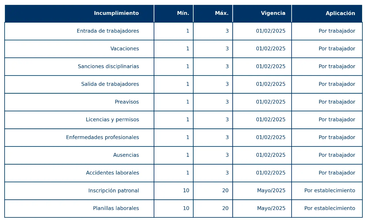 1 a 3 jornales mínimos por trabajador cuando no se comunica un movimiento obligatorio.