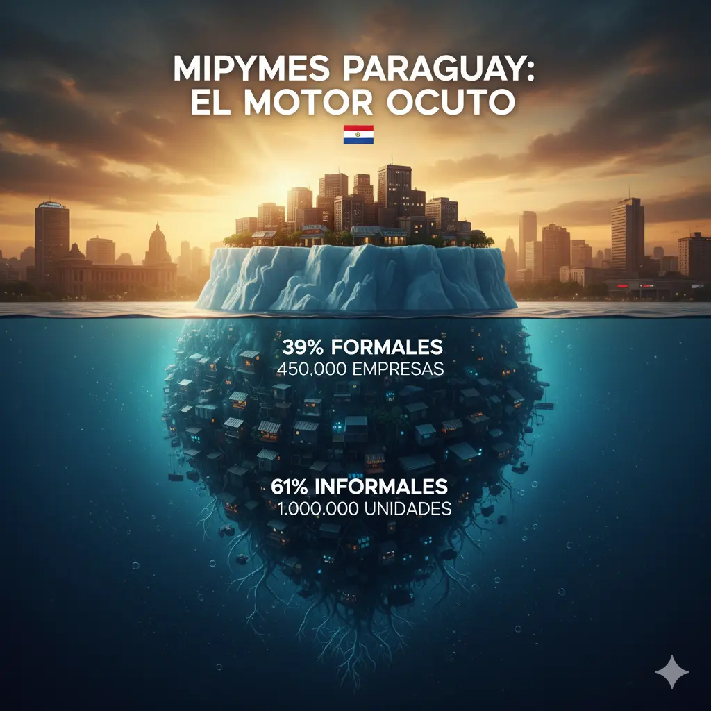 Las micro, pequeñas y medianas empresas (MIPYMES) son el motor de la economía paraguaya. Representan el 98% de las empresas del país y generan aproximadamente el 70% del empleo formal a nivel nacional. Si se consideran también los empleos informales, se estima que este segmento abarca hasta un 80% de la fuerza laboral total. Actualmente existen alrededor de 1.000.000 de unidades de negocios en Paraguay, pero solo 450.000 (39%) están registradas con RUC (es decir, son formales), lo que evidencia que más del 60% de los emprendimientos operan en la informalidad.